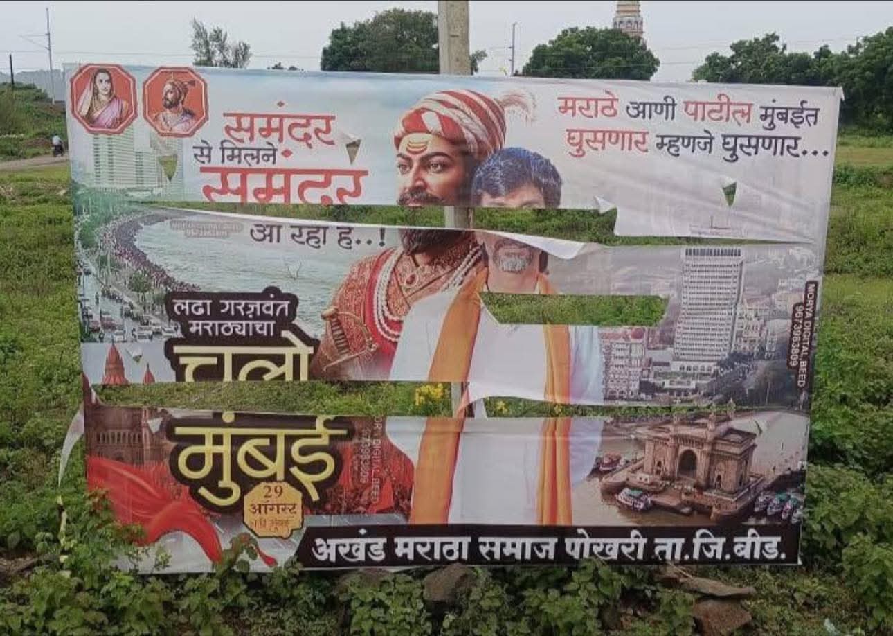 मा. मनोज दादा जरांगे पाटील यांच्या चलो मुंबई आशयाचे तेलगाव खुर्द येथील बॅनर अज्ञात माथेफिरू समाजकंटकाने फाडले आहे व मराठा समाजाकडून असल्या नीच वृत्तीचा जाहीर निषेध करण्यात येत आहे जाणीवपूर्वक कोणीतरी समाजा समाजा मध्ये तेढ निर्माण व्हावे म्हणून असे कृत्य करत आहे असे चर्चा सत्र नागरिकांन मध्ये सुरू आहे अखंड हिंदुस्थानचे आराध्यदैवत छत्रपती शिवाजी महाराज यांचे बॅनर फाडून काही समाजकंटकांना काय मिळणार आहे ते आमच्या हृदयात आहेत असे मराठा समाज बांधवांन कडुन भावना व्यक्त करण्यात येत आहे पण ह्यातून समाज कंटकांची नीच प्रवृत्ती पाहायला मिळते. बॅनर फाडणाऱ्या  अशा कुकर्मी नीच प्रवृत्तीच्या समांज कंटकांचा तात्काळ पोलिस प्रशासनाने छडा लावला पाहिजे अशी मागणी नागरिकांकडून करण्यात येत आहे.