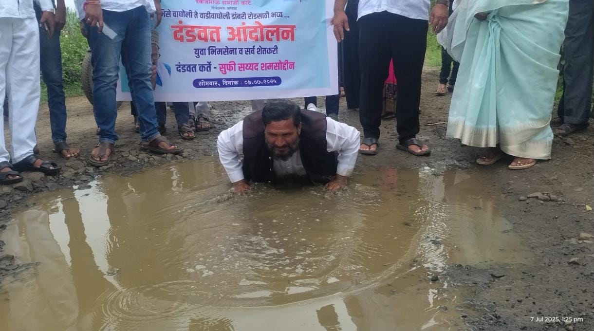 लातुर जिल्ह्यातील भिसे वाघोली ते वाडीवाघोली ते माटेफळ मोड पर्यंतचा डांबरी रोड करा/अन्यथा दंडवत आंदोलन करण्यात येईल असे निवेदनाद्वारे म्हटले आहे या विषयी सविस्तर वृत्त असे की वरील विषयी विनंती अर्ज / निवेदन करीत आहोत की, दंडवत आंदोलन करण्याचा ईशारा यापुर्वी मुख्य कार्यकारी अभियंता रस्ते ग्रामीण विकास संस्था लातूर यांना दिले होते. दि.09/06/2025 रोजी निवेदन दिले होते.तरी या गोष्टीची कसलीच दखल घेतली नाही. गेली दहा वर्षापासून या रस्त्याची दयनिय आवस्था आहे. शेतकरी, शेतमजुर, विद्यार्थी तसेच वाडीवाघोली गावातील नागरीकांना कठीण परिस्थितीतून मार्ग काढावा लागत आहे.शासन, प्रशासन संबंधित सांबा विभागाला जाग यावी यासाठी युवा भिम सेनेचे नेते मा. पंकजभाऊ काटे यांच्या मार्गदर्शनाखाली, संपर्कप्रमुख पंकज गायकवाड, जिल्हाध्यक्ष शेखर कांबळे, महिला जिल्हाध्यक्षा उमाताई आदमाने, विद्यार्थी आघाडी सर्व पदाधिकारी व युवा भिम सेनेचे प्रवक्ते सुफी सय्यद शमशोद्दीन हे दंडवत आंदोलनास उपस्थित शेतकरी पद्माकर भिसे, समाधान भिसे, शिवनारायण भिसे, तानाजी सुभेदार, नारायण सुभेदार, सरपंच वाडीवाघोली व इतर शेतकरी भिसे वाघोलीच्या हनुमान मंदीर ते वाडीवाघोली पर्यंत पुर्ण झालेल्या आंदोलनास आपण उपस्थित राहीलात यासाठी आपले आभार तात्काळ रोडसाठी निधी उभा करून डांबरी रोडचे काम पुर्ण करावे अन्यथा पुढील आंदोलनास आपणास सामोरे जावे लागेल असे सुफी सय्यद शमशोद्दीन असा ईशारा देऊन आपल्या प्रमुख उपस्थितीत हे निवेदन देण्यात आले आहे.