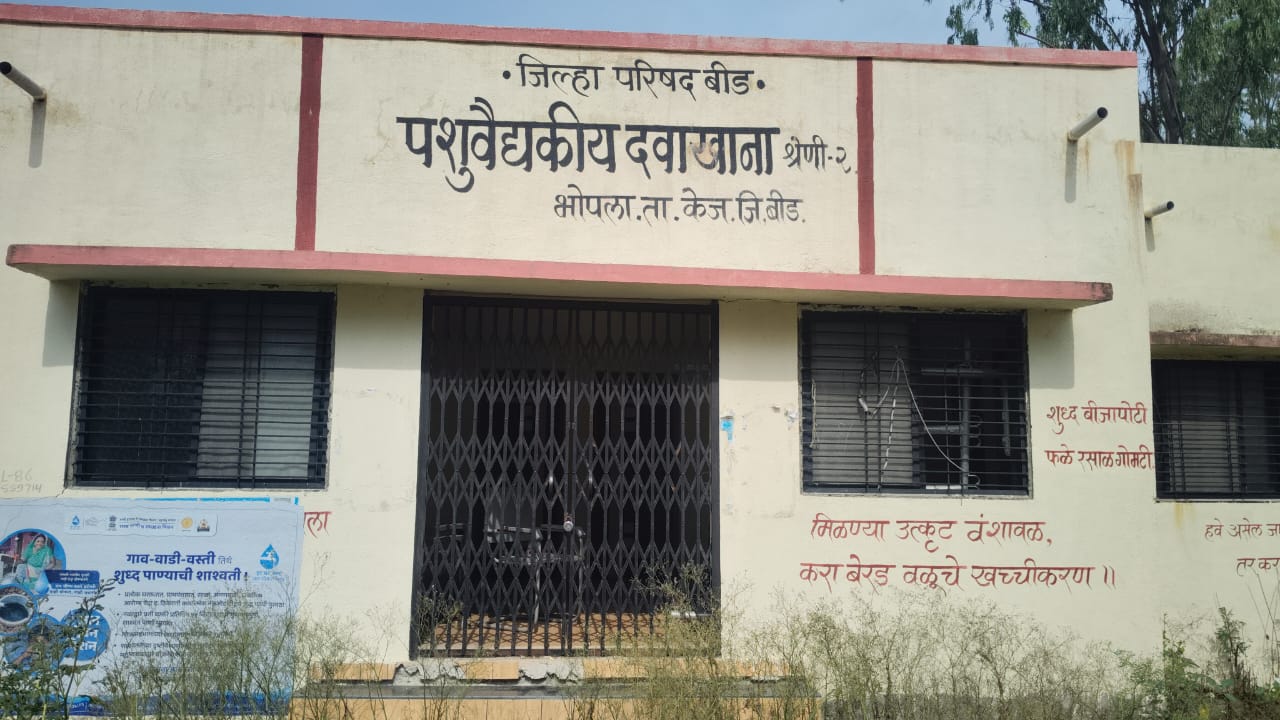 केज तालुक्यातील भोपला येथील पशुवैद्यकीय दवाखान्यातील डाॅक्टर एक मे पासून दवाखान्यात येत नसल्याचे सांगितले जात आहे त्यामुळे पशुपालक व गावकरी त्रस्त झाले आहेत कारण एखाद्या पशुला काही आजार झाला तर खाजगी डॉक्टरांन कडून उपचार घ्यावे लागतात मग भोपला येथे पशुवैद्यकीय दवाखाना काय शोभेला आहे असा प्रश्न नागरिकांना पडला आहे कारण गावात असलेली पशुवैद्यकीय दवाखान्याची इमारत भुत बंगला आहे की काय अशी झाली आहे कारण तेथे अनेक महीण्या पासुन कागदोपत्री नोकरीला असलेले डाॅक्टर हजर नसतात घरी बसून पगार घेतात की काय असा प्रश्न उपस्थित केला जात आहे कारण जेथे नोकरी करायची आहे तेथे १ मे पासून हजर नाहीत असे नागरिकांचे म्हणणे आहे मग डाॅक्टर गेले कुठे फरार झाले की काय असा प्रश्न उपस्थित केला जात आहे  तसेच असे डॉक्टरांना शासन पगार कशासाठी देते अशा डाॅक्टरला निलंबित करण्यात यावे अशी मागणी भोपला येथील नागरिकांन कडुन करण्यात येत आहे.