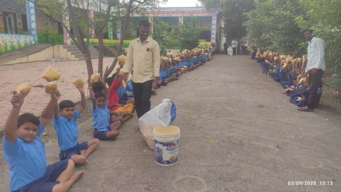 मराठा आंदोलकांकडून जिल्हा परिषद केंद्रीय प्राथमिक डोनजा शाळेस खाऊ वाटप!