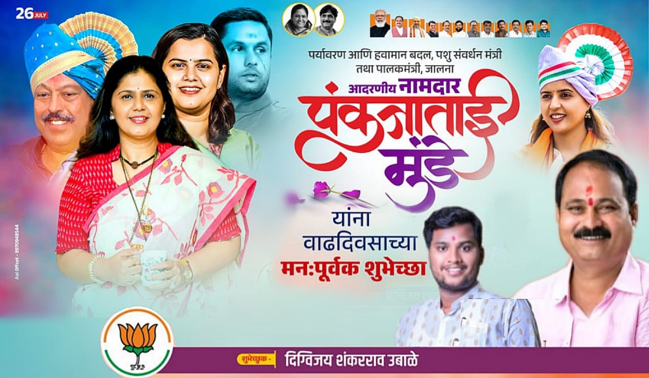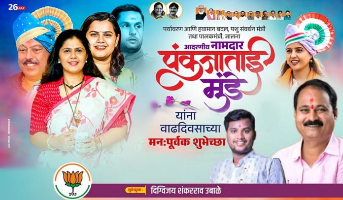 महाराष्ट्र राज्याच्या पशुसंवर्धन व पर्यावरण मंत्री नामदार पंकजाताई गोपीनाथराव मुंडे यांना वाढदिवसाच्या हार्दिक शुभेच्छा ! शुभेच्छुक: दिग्विजय शंकरराव उबाळे (जि.प.सदस्य बीड)