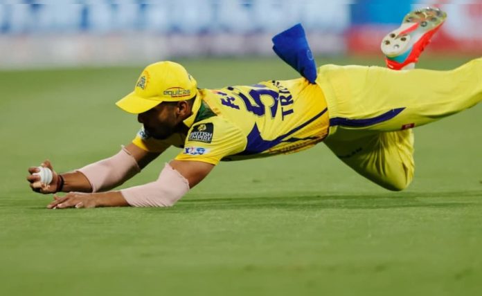 सोमवारी लखनऊ येथे लखनऊ सुपर जायंट्सविरुद्ध झालेल्या सामन्यादरम्यान चेन्नई सुपर किंग्जच्या राहुल त्रिपाठीने आयपीएल 2025 मध्ये एक उत्कृष्ट सीआयटी तयार केली. पहिल्या षटकाच्या पहिल्या चेंडूवर, एडेन मार्क्रामच्या शॉटने लांबीच्या डिलिव्हरीच्या मागील बाजूस कव्हर केल्यावर, त्रिपाठी स्प्रिंट परत आणि एक उत्कृष्ट डायव्हिंग कॅच घेतला. प्रसारकांनी नंतर हे दाखवून दिले की त्रिपाठी झेल घेण्यासाठी 29.15 धावली. काहींनी याला ‘सीझनचा कॅच’ म्हटले तर इतरांनी त्याला शुद्ध जादू केली.